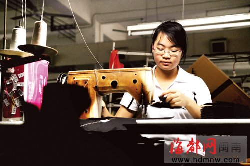 闷热的厂房车间里,曾梅玉坐在一台缝纫机后,正低头“拼缝”着鞋子的模型,没多久,缝好的鞋模就堆成了一座小山。“七八岁起我就开始做这活了”,梅玉笑着说。