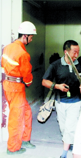 早报讯(记者 黄祖祥 通讯员 熊过煌 文/图)“完蛋了,我被困在电梯里出不去了,赶紧来救我!”昨日上午8时许,在晋江安东开发区某纸业公司2号仓库一部货运电梯里传出一名男子的求救声,消防官兵接警赶来,撬门救援,解救出这名被困男子。