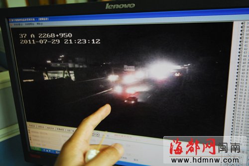 监控显示,当晚9时23分,苏某骑摩托逆行出现在泉厦高速A道上(画圈处)