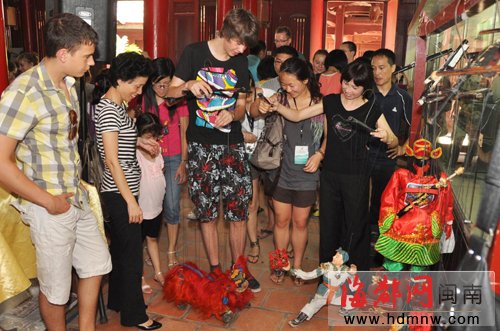 德国学生的带队老师Marc告诉记者,《青春梦》中木偶变换服装的那段,如梦如幻,令人叹为观止。Marc对在古厝中搭台表演木偶戏的方式很欣赏:“我个人很喜欢这种老式房子,我认为传统的房子和这种古老的木偶戏表演相互呼应,很是融洽。”另外,他说在德国也有木偶表演,但从未见过像泉州提线木偶这么精巧复杂的种类。