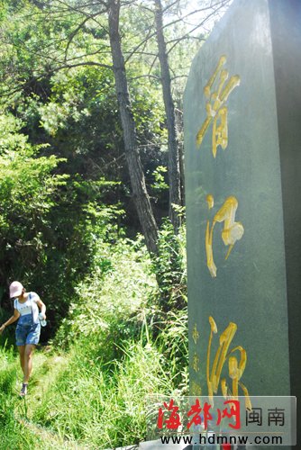 在当地村民的指引下,我们逆流而上,抵达云中山梯仔岭,溪流渐小,隐入密林之中。步行40多分钟,走了5公里左右的山路,到达梯仔岭东南坡谷后,眼前豁然开朗,出现一片湿地,“晋江源”三个金黄的大字立于青山绿水之中。