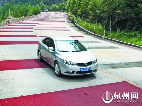 “彩色防滑路面不容易褪色,起码能保持5年以上。”永春县公路局薛书记说,用彩色防滑路面取代防滑带的原因,是该路段2006年路面整修完后,路面平坦,有些载煤、运送啤酒的重型货车,尤其是外地车辆,行车速度超过设计时速40公里/小时,飙到70公里/小时—80公里/小时,甚至冲出路面防护栏,掉进公路旁的河流里。因此,为警示驾驶人员,增加路面的粗糙程度和摩擦系数,减少刹车距离,首次使用彩色防滑路面。(来源:东南早报)