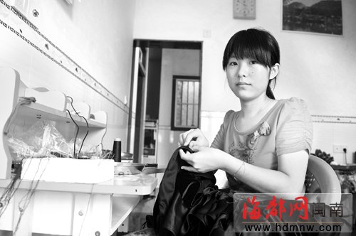 记者来到小辉家中时,她正在给衣服缝上小饰品。小辉说,这些衣服都是村里的人从服装厂拿过来的,她和母亲每天都会承包一些过来做,而自己从小时候懂事起就会做了。每件衣服都要缝上百颗小珠子,珠子有大有小,缝起来特别麻烦,她常被针刺破指尖。“缝一件要两个多小时,一天缝五六件,能赚30元。”小辉说,自己一天做10个小时,一件衣服要缝上几百针,一天下来,手臂都快抬不起来了,但为了能分担妈妈的重担,再苦也得坚持。