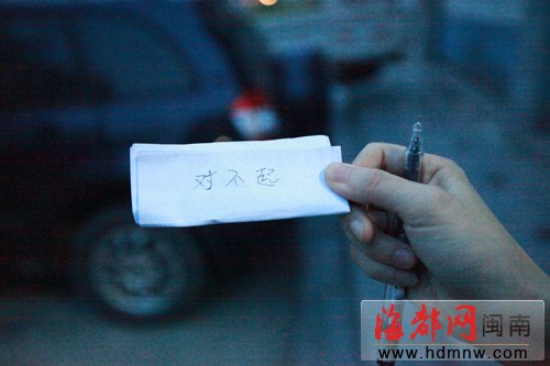 误会了王先生,李小姐很自责,写下“对不起”表示歉意