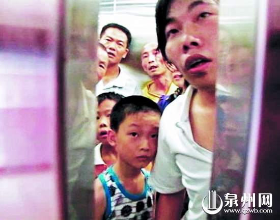 昨日下午1时35分,陈埭消防中队赶到现场,只见事发电梯门口,派出所民警、联防队员及部分群众正在不断地安慰电梯内的被困人员。经现场了解,电梯里面共有11名被困人员,其中8个大人,3个小孩。