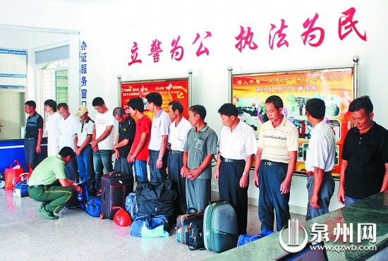 假借出国做“服装贸易”之名,妄图蒙混过关非法出境打工,今年7月7日,泉州泉港13名渔工因涉嫌偷越国(边)境,被边防部门截停在晋江机场。日前,涉嫌组织他人偷越国(边)境的犯罪嫌疑人张某伟被依法批准逮捕。昨日上午,泉州边防支队侦查员对张某伟执行逮捕。