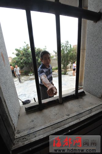 劫匪将老杨家窗户剪开(中间铁条,已修复)