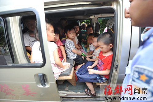 东南网-海峡都市报9月8日讯(记者 尤燕姿 谢向明 吕波 史国亮) 30多名幼儿园小朋友,或坐或蹲,被塞在只有7座的面包车里,一路驰骋。记者根据海都热线通968111所接到报料,在南安梅山镇区调查发现,一些普通面包车“变身”校车,不仅严重超载,而且大都有超速、不安全下客等情形。