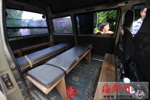 面包车的座位被改装成了板凳