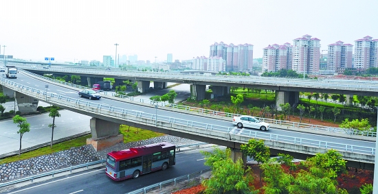道路清新整洁,成为中心城区一道风景线。图为东海立交桥一角。(张文艺 摄)