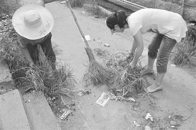 葛大婶说,村里有三个负责打扫的,早前,他们就已经分好了各自打扫的区域。“那他们呢?”记者问道。“他们动作快些,所以没那么早出来。”葛大婶说。