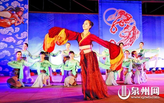 “笋江月色”是古泉州八景之一,明月高空照,笋江公园人群熙攘,乐声缭绕。舞台之上,身着古装的老者、女子和小孩逐一登场,先是净手焚香“拜月”,祈求风调雨顺,国富民康;接着是“咏月”,众人用诗词歌赋咏叹对明月的喜爱崇拜;随后是“走月”,年轻女子用歌舞表达中秋时节奔走相告的喜悦之情;最后是“泛月”,活动主办方准备了30艘游船,游船花灯点缀,市民可以泛舟江面,欣赏美好月色。