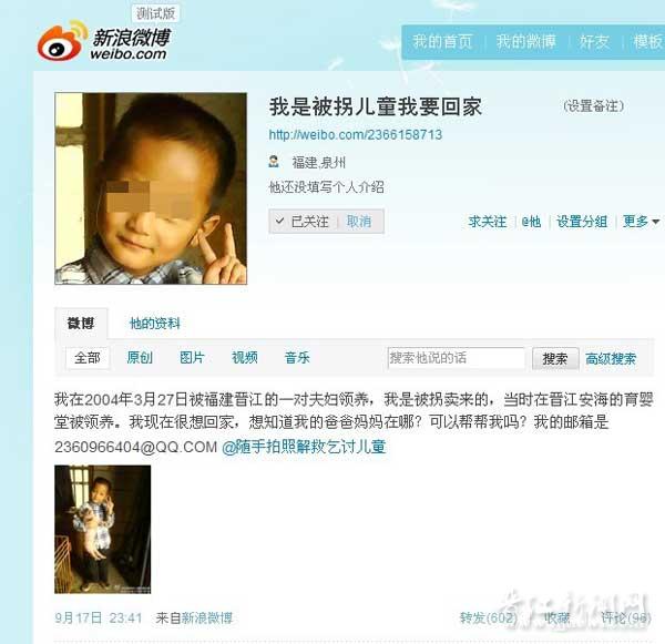 “我被拐求帮助”儿童发微博求助 牵动晋江人