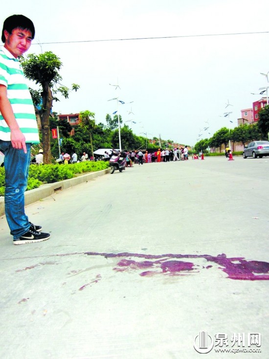 灵堂不远处的路面上有一摊已被晒干的血迹和两条长长的刹车痕迹,附近散落着一些玻璃小碎片。据目击者小吴介绍,前一天晚上10点40分左右,他和另外两人骑着摩托车从村里出来,看到路上躺着一个人,他们停车凑近一看,只见一个小孩趴在血泊中一动不动。他们忙呼喊附近的村民,并报了警。
