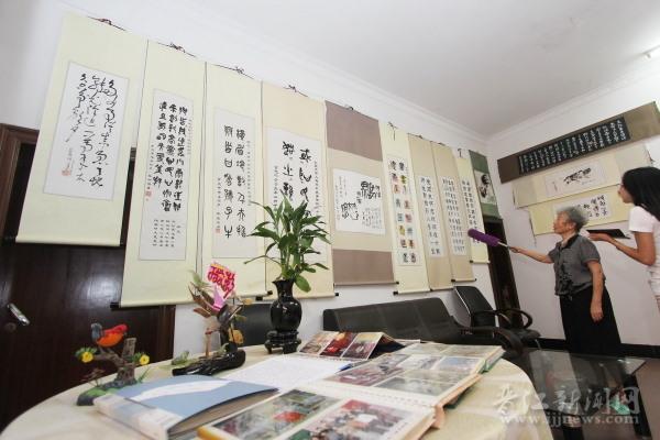 “余耄耋已届,人生之旅感悟颇多。仪以尺幅点墨,一为执砖引玉,二则聊对家园党恩略表寸心。”一走进蔡丽鸿老人的“墨缘室”,记者便看到一幅幅优美的书法作品悬挂在她家的大厅,有篆书、隶书、草书等。