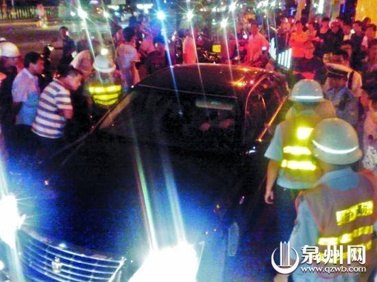 昨晚10时,一辆黑色豪车从泉秀街由东往西行驶,到田安南路路口时,豪车竟左拐准备逆行开进田安南路的单行车道,被执勤交警发现拦下,豪车上驾驶位上男子被怀疑酒后驾驶,但拒不开车门下车接受检查,将车停在道路中间,与警车僵持了近半个小时,堵塞交通。