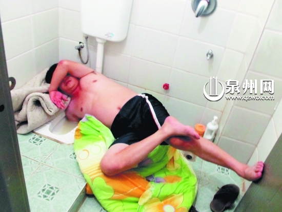 陈埭消防中队接警赶到现场时,只见张某光着上身侧躺在便池上,右手臂插进便池,泡在浑浊的污水里。消防队员用冰水给被卡的手臂降温;拿来棉被垫在张某身下,让他放松;破拆便槽后,张某终于抽出右手,站了起来。