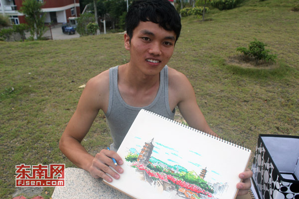 他说,本来打算画“泉州十八景”,但考虑有些地方难突出特点,加上距离的关系,就只挑一些代表性的来画;而接下,打算对学校后面一块空地进行构想,画出一幅设计平面图。“现在看到之前画好的作品,都觉得很不好”,他坚持每天晚上抽时间画画,想办法更进步,希望能探索画出自己的一种风格。
