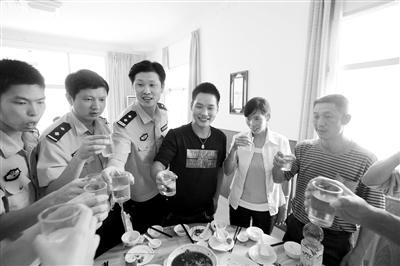 中午12点多,派出所给一家人安排了丰盛的团圆饭。饭桌上,尽管小柯不太爱说话,但每上一道菜,他都不忘先给父母夹菜,给众好心人倒饮料,最后才是自己的。