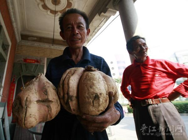 晋江菜农从田里挖出“巨无霸”地瓜 重达15斤