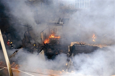 古厝已经被烧塌,浓烟密布
