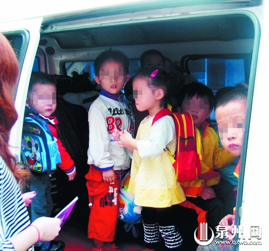 孩子们挤在一辆校车内(来源:泉州晚报)