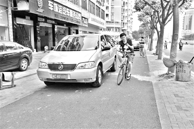 施工基本完成路段,小车随意停放在非机动车道 N本报记者 文/图