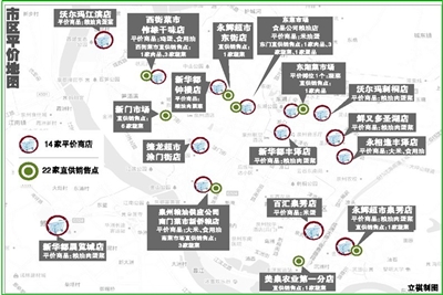 昨日正式启动的22家直供销售点主要分布如图。