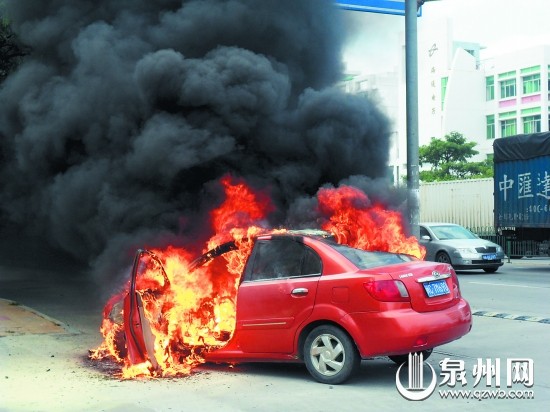 一小轿车于泉州市南环路自燃 消防10分钟扑灭