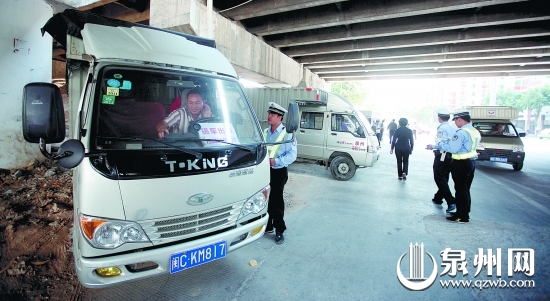 本报讯 (记者黄连茂 实习生蔡明思/文 张九强/图) 市区宝洲街从高速桥下到云鹿路路段,大量货车长期聚集,造成道路和市政设施毁损,交通安全隐患重重(详见本报28日第八版)。报道刊发后,引起相关部门重视。日前,丰泽交警大队四中队民警与泉秀街道城管执法中队执法人员及泉秀街道办事处、成洲社区相关负责人共20多人,上路查处整治违规行为,14辆货车领到罚单。
