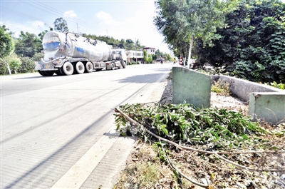 当时村民用这根树枝当路障