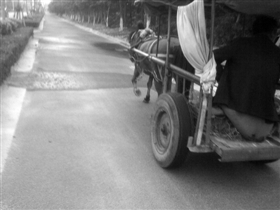 石狮街头上演“穿越”剧 马车市区人行道穿行