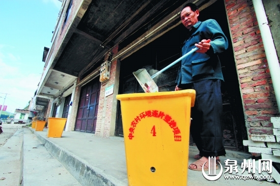 德化国宝乡村民家门口都放着一个垃圾桶,村民自觉将垃圾放入垃圾桶里。 (陈小阳 摄)