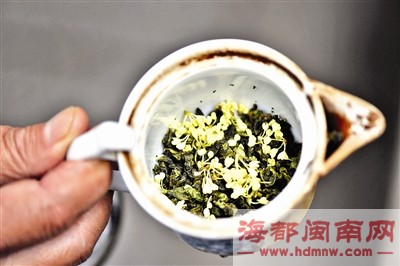 桂花开时,一家人都舍不得将花打下,而是在地上铺层纸,任花自然飘落。落到一层时,家人再拣起,放在密封的罐子里。泡茶时,拿出来放一点,茶也跟着香了。这茶,不仅他和老伴爱喝,小孙女爱喝。102岁的老母亲也很喜欢,喝了几十年了,一直都没间断。