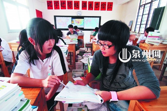 晋江荆山外来工子弟学校的同学正在认真复习,如果异地高考难题能得到全面破解,他们就能在泉州高考了。 (陈晓东 摄)