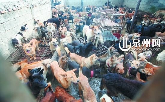 数百只狗来历不明 晋江警方突击活狗交易点(图)