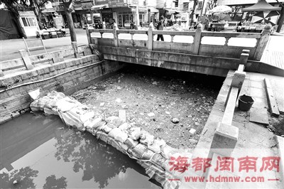 市民林先生昨日致电海都热线通968111诉苦:市区和昌花苑小区前,有段内沟河(田安渠)因施工需要被堵截了。最近已经没施工了,可堵在河里的沙袋没清理,河面如一潭死水,漂着不少垃圾,不时传出难闻的臭味,不少住户都不敢开窗。希望邦邦联系有关部门尽快解决。