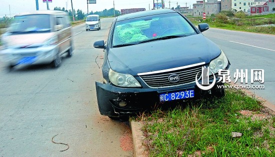 昨日上午9时多,记者途经沿海大通道张坂段,发现一辆黑色轿车“骑上”路中绿化带。走近一看,这部小轿车的车头破损,挡风玻璃破碎,轿车四门紧闭,车内却空无一人。