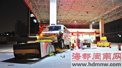 放心!加油站的有关负责人陈先生说,这个加油泵很先进,被车子撞倒后,会自动启动应急封闭系统,汽油没有外漏。