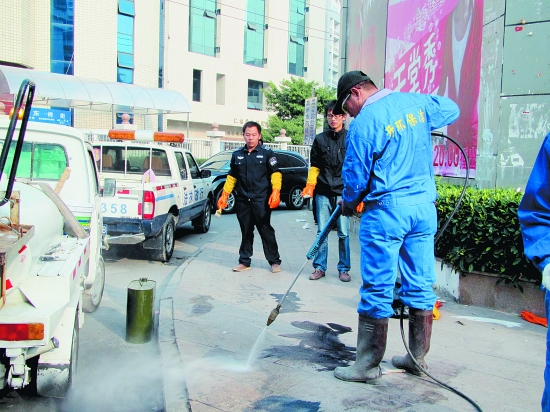 保洁人员正在对“牛皮癣”进行清洗