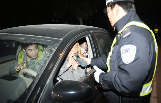 - 2011-12-03全市交警严查酒驾 一男子酒后还骑车载老婆孩子