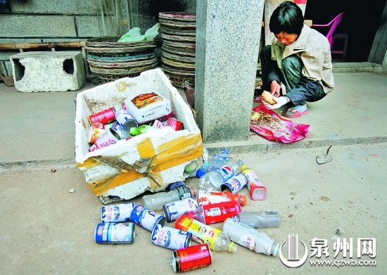 小婕的母亲捡废品换钱,补贴家用,一个个塑料瓶慢慢地垒着希望。