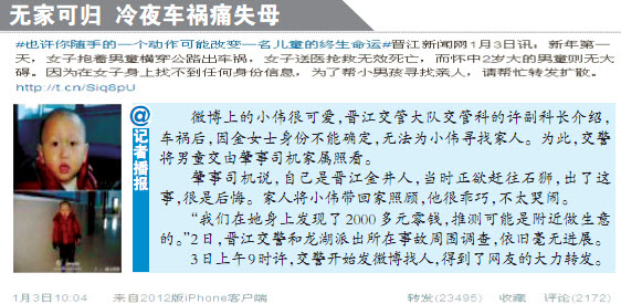 冷夜车祸痛失母亲 2岁儿微博寻亲3天后找到爸爸