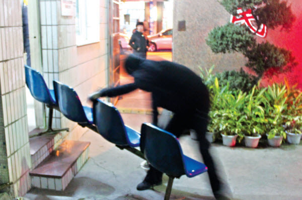 李某将连着手铐的椅子一起搬出了保安室