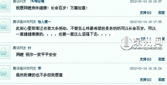 南平网友“带刺玫瑰”留言说:“愿阿嬷,身体健康!长命百岁!孩子们,加油!”