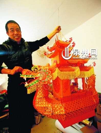 陈晓萍和他设计制作的龙船花灯