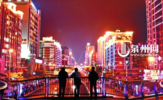 夜景扮靓丰泽街,不少行人驻足观赏。