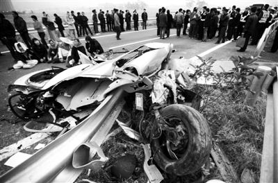 日下午4点多,南惠高速涂寨到斗尾路段发生惨烈车祸。福建泉州惠安净峰一家六口本来开开心心地开车到泉州关帝庙进香,在回家的高速公路上,因为车胎爆胎,撞到路中间的护栏,车子被护栏切成两半,车上六人中五人当场死亡,其中包括两个孩子。郭新 摄