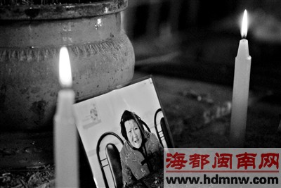 东南网-海都闽南版2月6日讯(记者 陈世国 文/图)一张照片,两根白烛,一炷清香,爱心乞丐婆阿kei的葬礼,没有隆重的仪式。