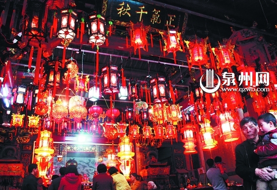 昨日,晋江东石镇嘉应庙里灯火辉煌,盏盏宫灯璀璨夺目,62名台胞跨越台湾海峡来到这里,参加“闽台共数一宫灯”活动,并带来6对花灯一同欢度元宵。